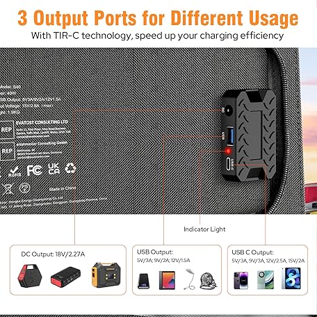 Thông tin sản phẩm Portable Solar Panel Charger 40W Foldable Solar Panel for Portable Power Station, iPhone, iPad, Laptop, Camping Solar Panels with USB QC 3.0/USB C/18V DC, Solar Panels for Camping Outdoor Van RV Trip