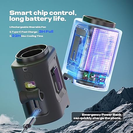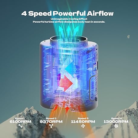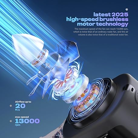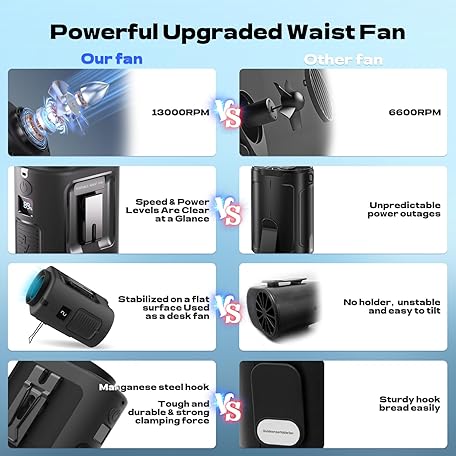 Portable Waist Fan, 4 Speeds 13000RPM Strong Airflow, belt fan with up to 22H of Working Time, Hands-Free Neck Fan, Rechargeable Wearable Personal Fan for Outdoor, Hiking,Jobsite, Farms