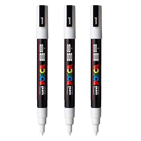 • posca PC-3M Water-Based Paint Markers, Reversible Fine Tip (0.9-1.3mm), White, 3 Count