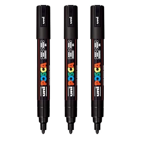 • posca PC-5M Water-Based Paint Markers, Reversible Medium Tip (1.8-2.5mm), Black, 3 Count