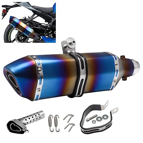 Sản phẩm POSENG 1.5-2" Inlet Motorcycle Exhaust Muffler Slip On 400mm Lengthened Universal for Dirt Bike ATV Street Bike 38-51mm Inlet with DB Killer Silencer HTRACING (Grilled Blue) đang được bán với giá ưu đãi là $51.2191 tại nước Mỹ.