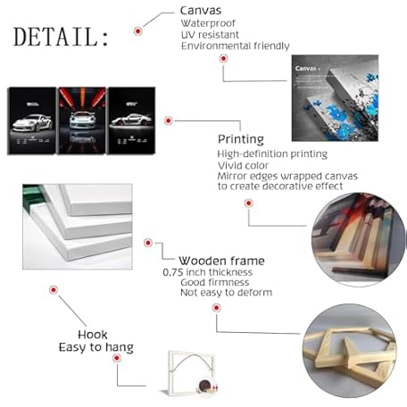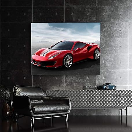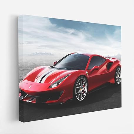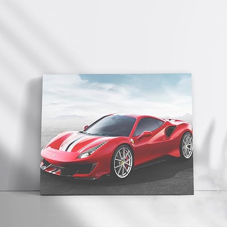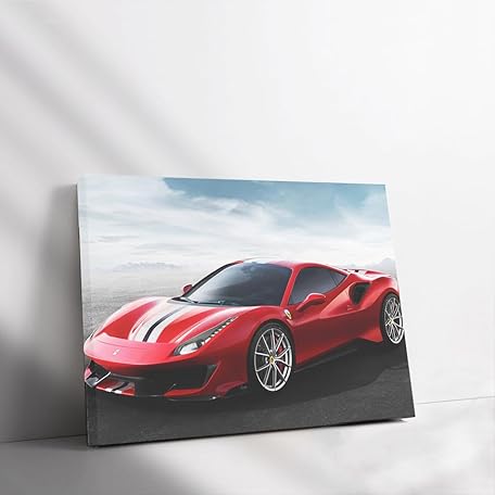 Poster Ferrari 488 Pista Car Canvas Print Wall Art Framed Painting [Canvas Framed - 24x16 inch]
