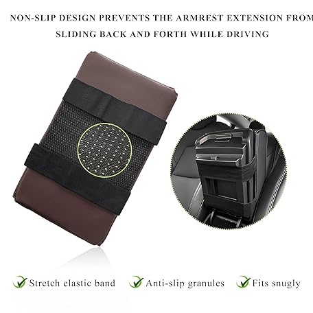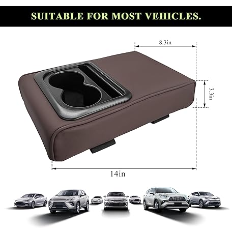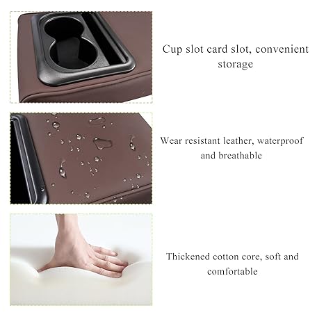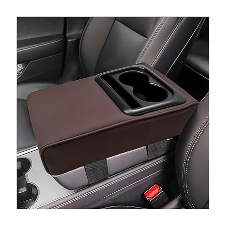 povtii Car Center Console Armrest Pillow, Leather Auto Arm Rest Cover Protector with Cup Holder and Phone Holder, Memory Foam Armrest Cushion for Most Vehicles (Coffee, Glossy)