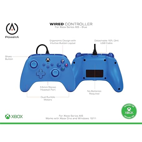 Thông tin sản phẩm PowerA Wired Controller for Xbox Series X|S - Blue, gamepad, video game/gaming controller, works with Xbox One, Officially Licensed