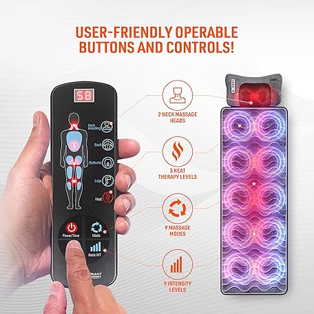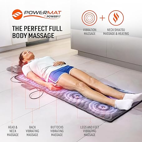 Thông tin sản phẩm Powermat by Powerfit – Full Body Massage Mat with Detachable Massage Pillow, 9 Intensity Levels, 9 Massage Modes & 3 Heat Therapy Settings | Alleviates Muscle Pain, Improves Circulation, Stress Relief