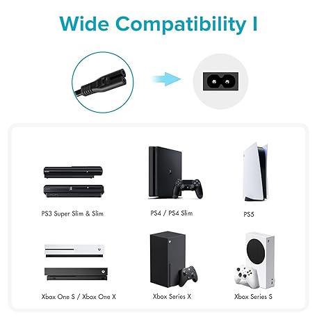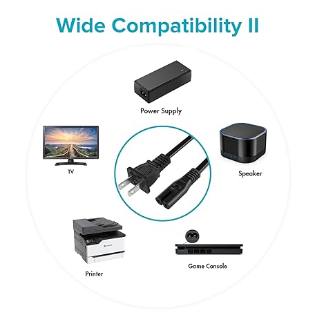 Powseed 6Ft 2-Prong Power Cord 2 Slot AC Adapter Cord for HP Dell Samsung Sony Asus Acer Toshiba Laptop Charger LED LCD Monitor TV Epson Lexmark Printer PS3 Slim PS4 PS5 Xbox