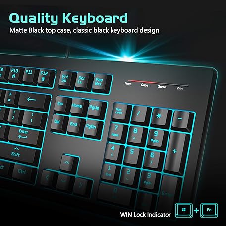 Thông tin sản phẩm POWZAN Light Up Quiet Gaming Keyboard - Membrane Silent Wired Keyboard with Low Profile Lighted Key for Computer, Windows PC Gamer - Full Size, Black