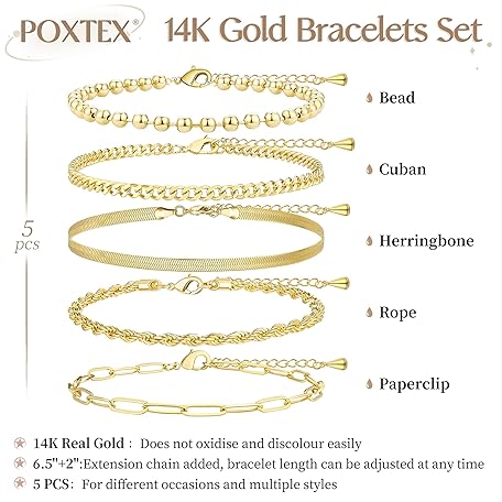 Thương hiệu Poxtex là cái tên nổi tiếng được rất nhiều khách hàng trên thế giới chọn lựa. Với kiểu dáng đẹp mắt, sang trọng, sản phẩm Poxtex Gold Bracelets for Women Non Tainish, Dainty Thick Bracelets Stack for Women Trendy, Chunky Gold Plated Cuff Stackable Bracelets With Beaded Cuban Paperclip Snake Rope Bangle Hand Chain Jewelry Gifts for Women là sự lựa chọn hoàn hảo nếu bạn đang tìm mua một món cho riêng mình.