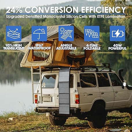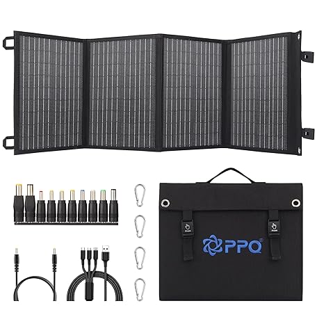 PPQ 40W Portable Solar Panel Kit 18V/2.2A,3lb Foldable Briefcase Solar Charger w/ 24% Efficiency,2 Cables & 14 Outputs for All Phones, Pads, Camping Power Banks, IP67 Waterproof