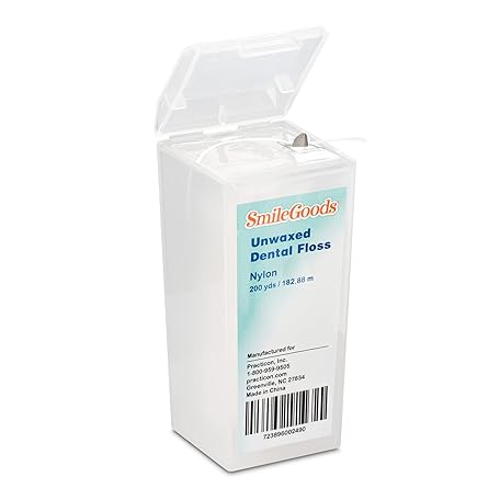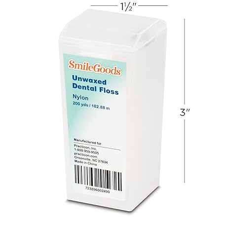 Thông tin sản phẩm Practicon SmileGoods Unwaxed 200 Yard Dental Floss, Shred Resistant Nylon, Noncoated, Wax Less, Wax Free Floss, 1 Pack