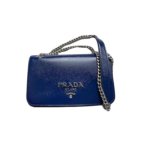 Prada Pattina Saffiano Patent Leather Shoulder Bag, Ink Blue