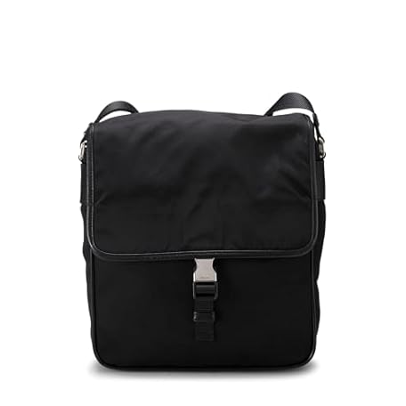 Prada, Pre-Loved Black Nylon Check Buckle Shoulder Bag, Black