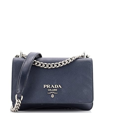 Prada Pre-Loved Chain Flap Crossbody Bag Saffiano and Soft Calf Small, Blue