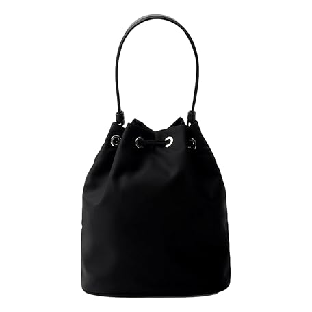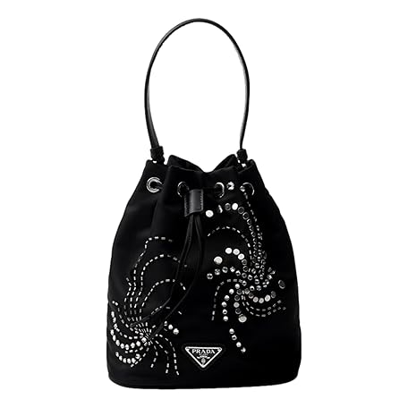 Prada Womens Re-Nylon Mini Drawstring Bucket Bag Crossbody Black Beaded Embroidered 1BE067