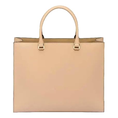 Prada Womens Saffiano Sabbia Sand Beige Lux Logo Embossed Medium Shoulder Tote Handbag 1BA335