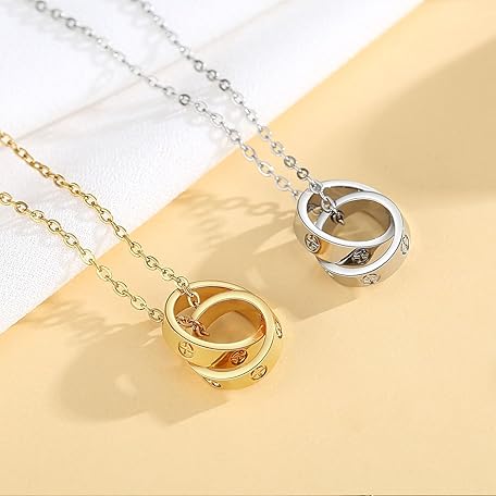 • pralajew Love Necklace, Interlocking Circle Necklace, Dainty Pendant Necklace for Women, Stocking Stuffers for Women Valentines Christmas
