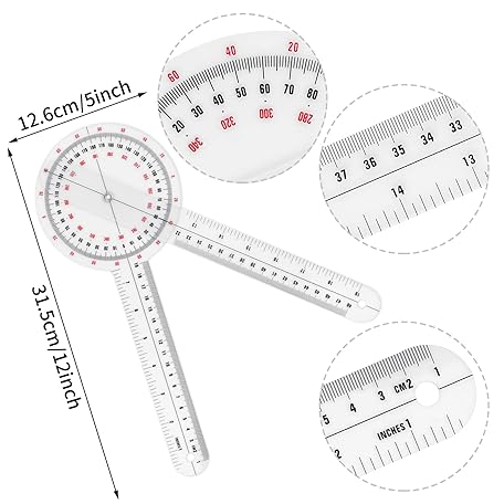 Thông tin sản phẩm Prasacco 12 Inch Goniometer, Transparent Orthopedic Angle Ruler Plastic Goniometer 360 Degree Goniometer Angle Protractor Goniometer for Body Measuring Tape Goniometer Protractor Ruler