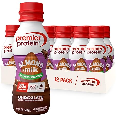 Premier Protein Almondmilk Plant Based Protein Shake, 20g Protein, 5g Sugar, 11.5 Fl oz, Chocolate, 12 Count