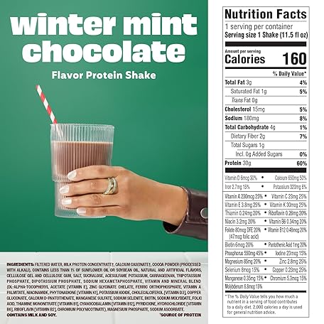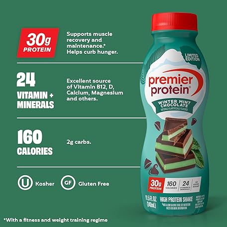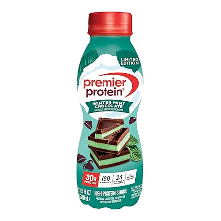 Premier Protein Shake, Limited Edition Winter Mint Chocolate, 30g Protein, 1g Sugar, 24 Vitamins & Minerals, Nutrients to Support Immune Health, 11.5 Fl Oz, Single Bottle