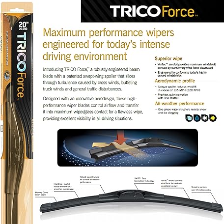 Premium Beam Wiper Blades for 2021 Ferrari 488 Pista Set Trico Force Beam Blades Wipers Set Bundled with MicroFiber Interior Car Cloth