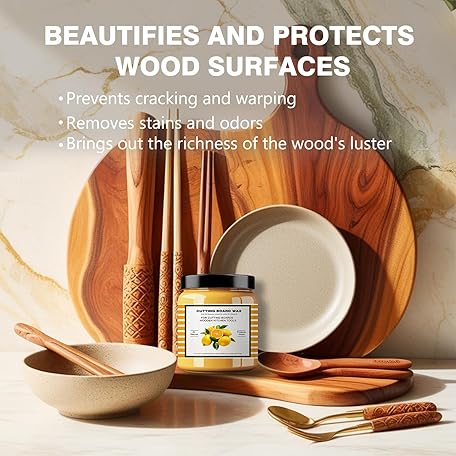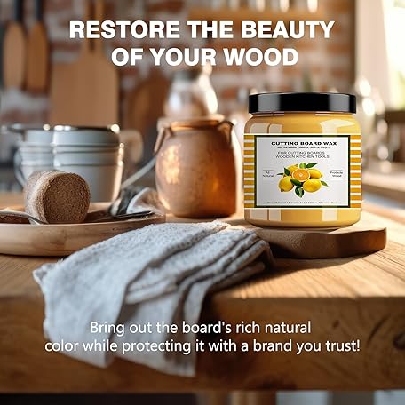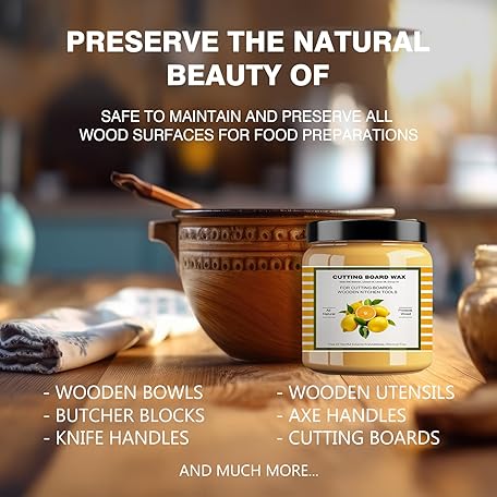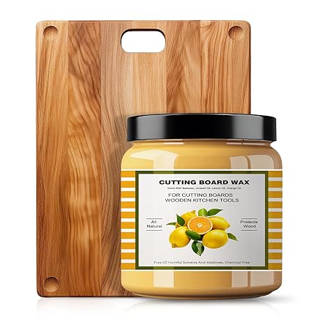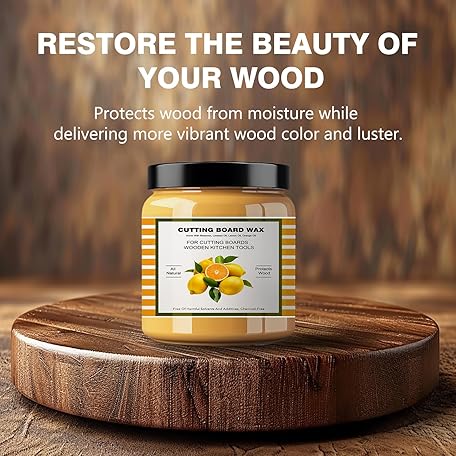 • Premium Cutting Board Finish Wax - Natural Beeswax and Carnauba Wax - Improved with Lemon & Orange Oils - Beeswax Wood Polish - for Wood Butcher Blocks, Wooden Bowls - Beeswax for Wood- 3.5oz