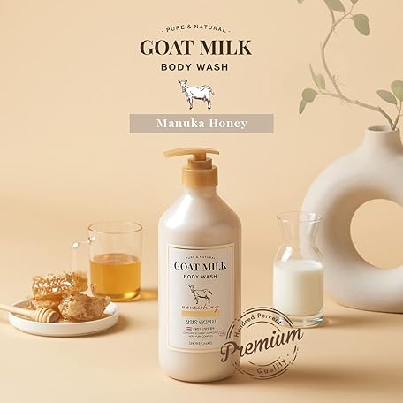 Sản phẩm Premium Goat Milk Body Wash Manuka Honey For Smooth Skin, Moisturizing PH Balancing Body Cleanser with Probiotics Honey, Herb Pure Complex, 27 Fl Oz, Pack Of 2 đang được bán với giá ưu đãi là $45.78 tại nước Mỹ.