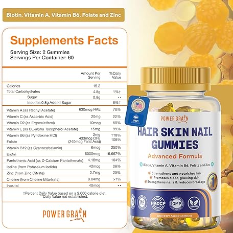 Premium Hair Skin and Nails Gummies – 5000 Mcg Biotin Vegan Vitamins for Men & Women – Promotes Healthy Hair Growth, Strong Nails, Radiant Skin – 10X Extra Strength - Blueberry Flavour