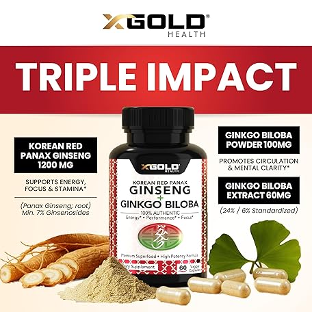 Thương hiệu X Gold Health là cái tên nổi tiếng được rất nhiều khách hàng trên thế giới chọn lựa. Với kiểu dáng đẹp mắt, sang trọng, sản phẩm Premium Korean Red Panax Ginseng Standardized to 7% Ginsenosides + Ginkgo Biloba Powder | Ginkgo Biloba Extract – High Potency Energy, Focus, Vitality | Brain Support – Herbal Supplement – Non-GMO là sự lựa chọn hoàn hảo nếu bạn đang tìm mua một món cho riêng mình.