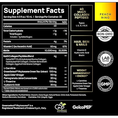 Thông tin sản phẩm Premium Liquid Collagen for Women Weight Loss & Beauty w. Hyaluronic Acid, Biotin, L-Carnitine, Apple C Vinegar - Ultra Pure Multi Collagen Protein Shots Drink + Hair & Skin Liquid Vitamins - Colageno