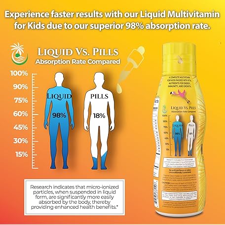 Thông tin sản phẩm Premium Liquid Multivitamin For Kids | Sugar Free Kids Vitamins | 100% DV of 14 Vitamins for Kids | Multivitamin for Children Ages 4+ | Great Tasting, Non-GMO, Max 98% Absorption Rate- 16 oz, 32 Serv