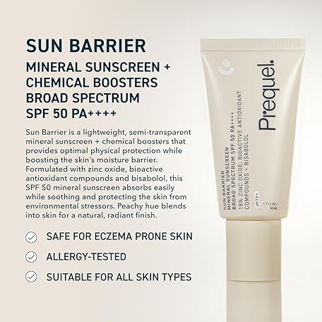 Prequel Skin Sun Barrier Mineral Sunscreen SPF 50. PA++++ Broad Spectrum Zinc Oxide Sunblock with Semi-Transparent Lightweight Texture. Moisturizing UV Defense for Face. Travel Size, 1.7oz