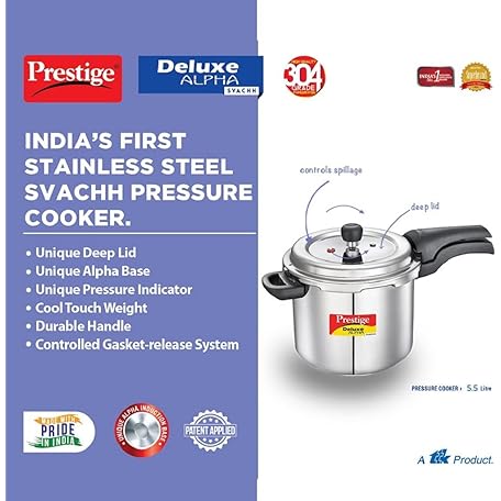 Thương hiệu Prestige là cái tên nổi tiếng được rất nhiều khách hàng trên thế giới chọn lựa. Với kiểu dáng đẹp mắt, sang trọng, sản phẩm Prestige Deluxe Alpha Svachh Stainless Steel Pressure Cooker with Alpha Base and Deep Lid for Spillage Control, (5.5 Liter) là sự lựa chọn hoàn hảo nếu bạn đang tìm mua một món cho riêng mình.