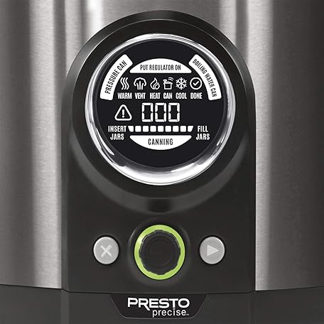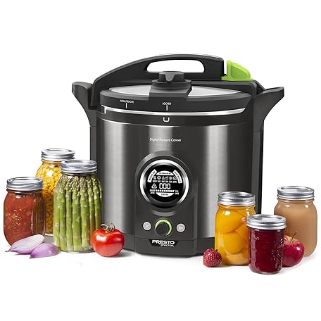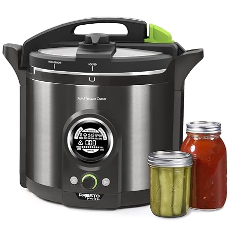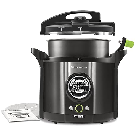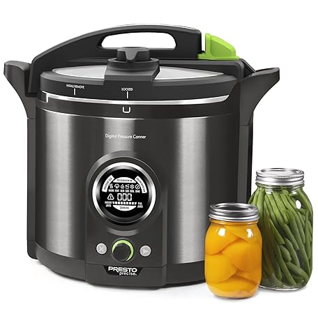 Thông tin sản phẩm Presto 02144 12-Quart Digital Pressure Canner - Digital Display, Waterbath Capable, 10-Built-In Safety Features, Recipe Book, Black Stainless Steel