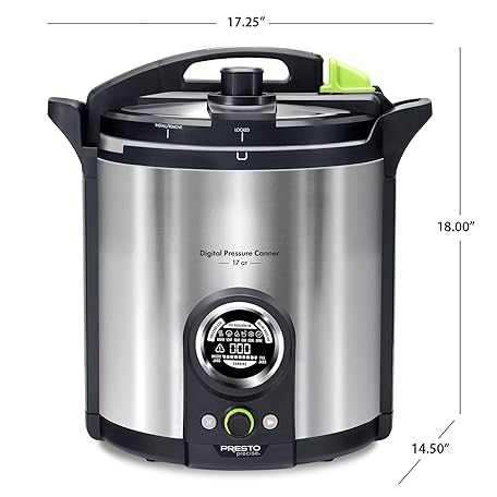 Presto 02152 17-Quart Digital Pressure Canner - Digital Display, Waterbath Capable, 10 Built-In Safety Features, Recipe Book, Stainless Steel