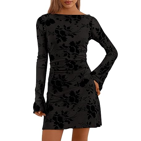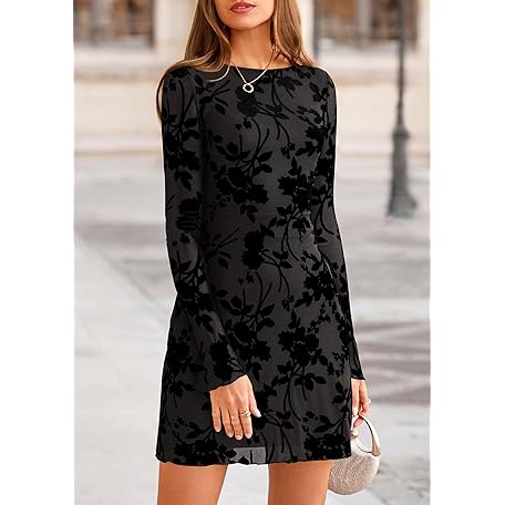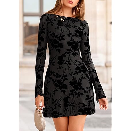 • PRETTYGARDEN Women's 2025 Fall Fashion Floral Long Sleeve Mini Dress Mesh Bodycon Short Party Date Night Going Out Dresses