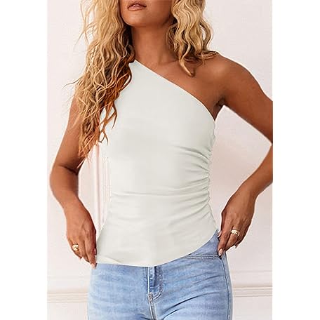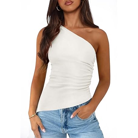 • PRETTYGARDEN Womens 2025 Summer Y2K Tops Sleeveless One Shoulder Slim Fit Shirts Ruched Knit Asymmetrical Top Blouse