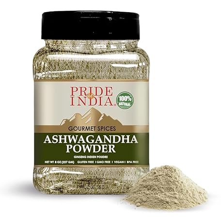 Pride Of India PACK of 6 - Natural Ashwagandha Root Ground – Health Benefits – Good for Energy Level/Body Functions – No Gluten/Additives – Easy to Store – 8 oz. Medium Dual Sifter Jar