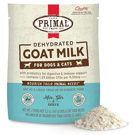 Primal Goat Milk Powder for Dogs and Cats, Shelf Stable Food Topper with Probiotics for Digestion, Hydration, and Immune Support, Original Recipe 5.2oz Pouch