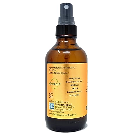 Thông tin sản phẩm PRIME NATURAL Rose Water Spray 4oz/120ml, USDA Certified Organic, Facial Toner, Hydrating Mist for Face & Hair - Bulgarian, 100% Pure, Natural, Preservative-Free, Moisturizer from Fresh Rose Petals