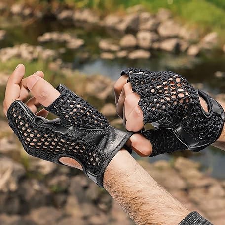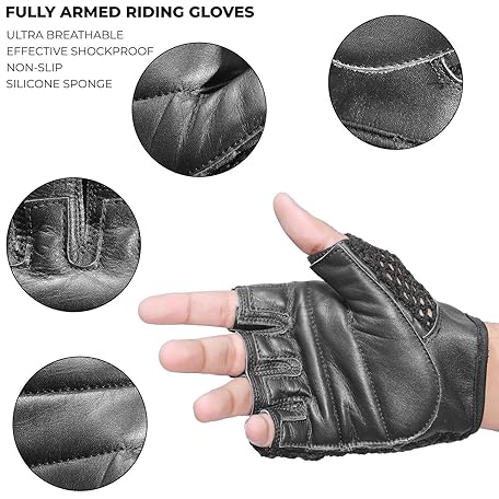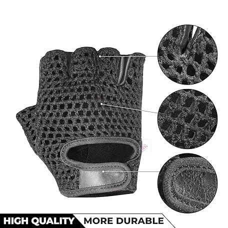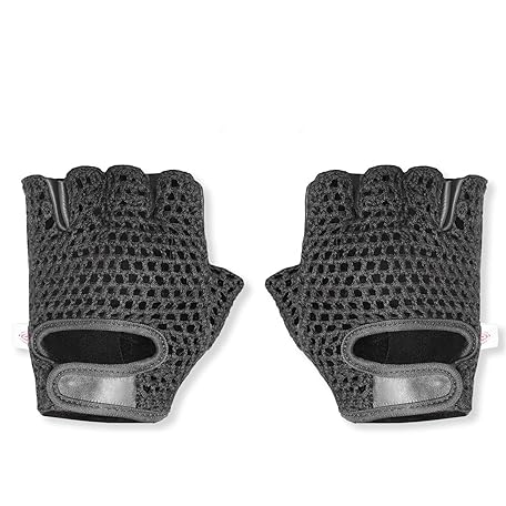 • Prime Sports Leather Crochet Fingerless Driving Weight Training Cycling Wheelchair Biker Gloves