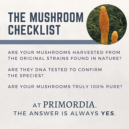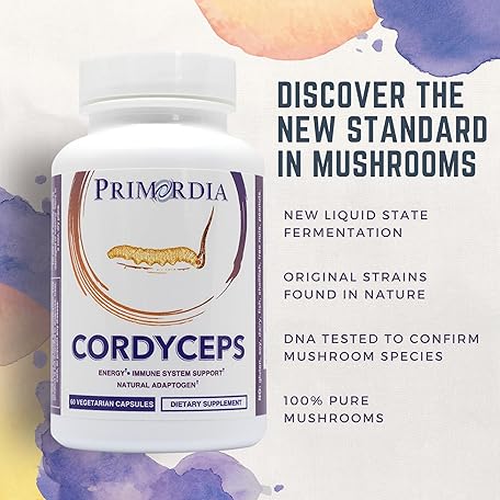 Thông tin sản phẩm Primordia Pure Cordyceps Mushroom Supplement, 60 Capsules, Liquid State Fermentation, Cordyceps Sinensis Mushrooms, Immune Function Support, Boosts Energy & Endurance