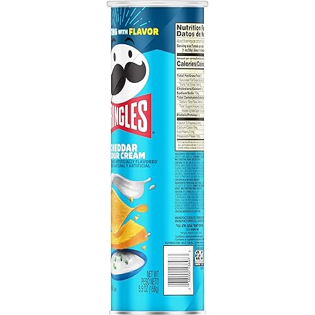 Thông tin sản phẩm Pringles Potato Crisps Chips, Lunch Snacks, On-The-Go Snacks, Cheddar and Sour Cream, 5.5oz Can (One Can)