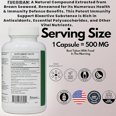Sản phẩm PRISTINE'S Fucoidan 500MG Immunity Supplement Capsules - 60 Day Supply - Brown Seaweed Extract - Potent Herbal Antioxidant Lung Health & Skin Health Support đang được bán với giá ưu đãi là $35.9591 tại nước Mỹ.