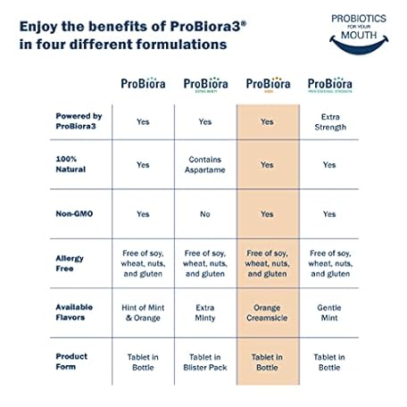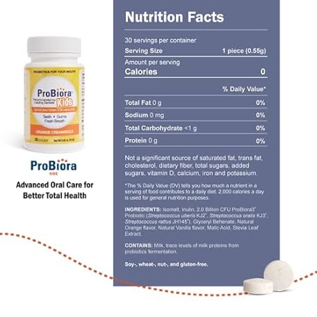 ProBiora Kids Oral-Care Chewable Probiotic Tablets | Probiotic Supplement Designed Specifically for Kids | Healthier Teeth & Gums | Fresher Breath | Whiter Teeth (30 Count (Pack of 3), Orange)
