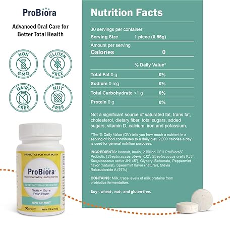 Sản phẩm ProBiora Oral Probiotics for Teeth and Gums | Dental Probiotics for Improved Oral Health | Bad Breath Treatment for Adults | ProBiora3 Patented Probiotic Blend | Tooth Whitening | 30 Mint Tablets đang được bán với giá ưu đãi là $17.3964 tại nước Mỹ.