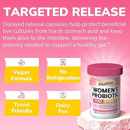 Probiotics for Women 100 Billion CFU 15 Strains, Daily Probiotic & Prebiotic Supplement with Organic Cranberry to Support Vaginal, Digestive, Immune Health, Shelf Stable, 30 Vegan Capsules
