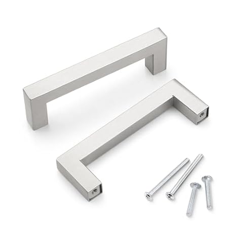 • Probrico 50 Pack Silver Cabinet Pulls Square Kitchen Cabinet Hardware 3-3/4 Inch(96mm) Hole Center Modern Drawer Handles Stainless Steel Satin Nickel Drawer Pulls for Cupboard