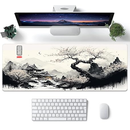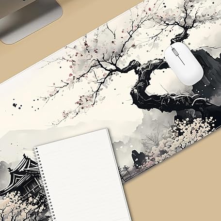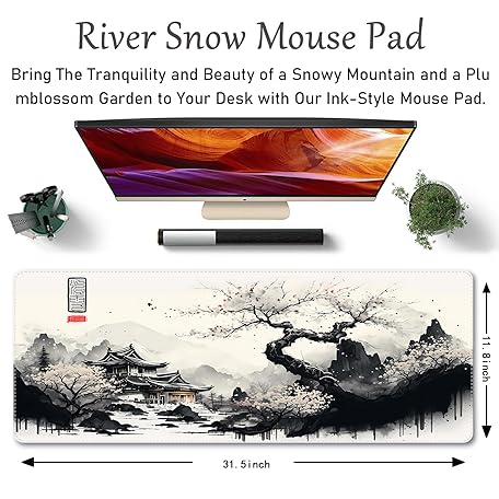 Thông tin sản phẩm ProbTis Japanese White Mouse Pad, Large Cherry Blossom Desk Mat, XL Anime Gaming Keyboard Mat, Non-Slip Rubber Base, Big Extended Desk Protector for Home Office, 31.5"x11.8" (River Snow)