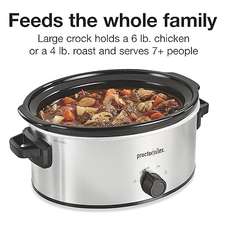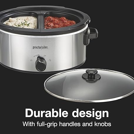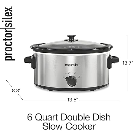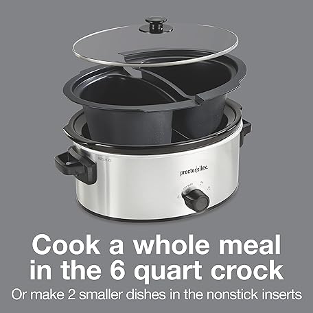 Thông tin sản phẩm Proctor Silex Double Dish Slow Cooker with 6qt Crock and Dual 2.5qt Nonstick Insert to Cook Two Meals at Once, Dishwasher Safe Pot & Lid, Silver (33563)