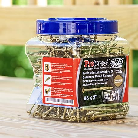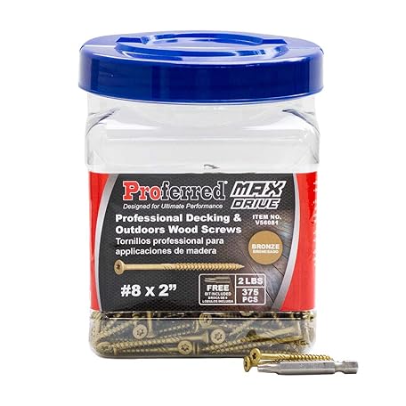 Sản phẩm Proferred Professional Decking & Outdoors Wood Screws, Bronze SKT® Coating - 1500 Hour Salt Spray, #8 X 2, 6 Lobe 20 Drive (375pcs with 1 Bit in Jar) Model Number: V56081 đang được bán với giá ưu đãi là $19.1731 tại nước Mỹ.